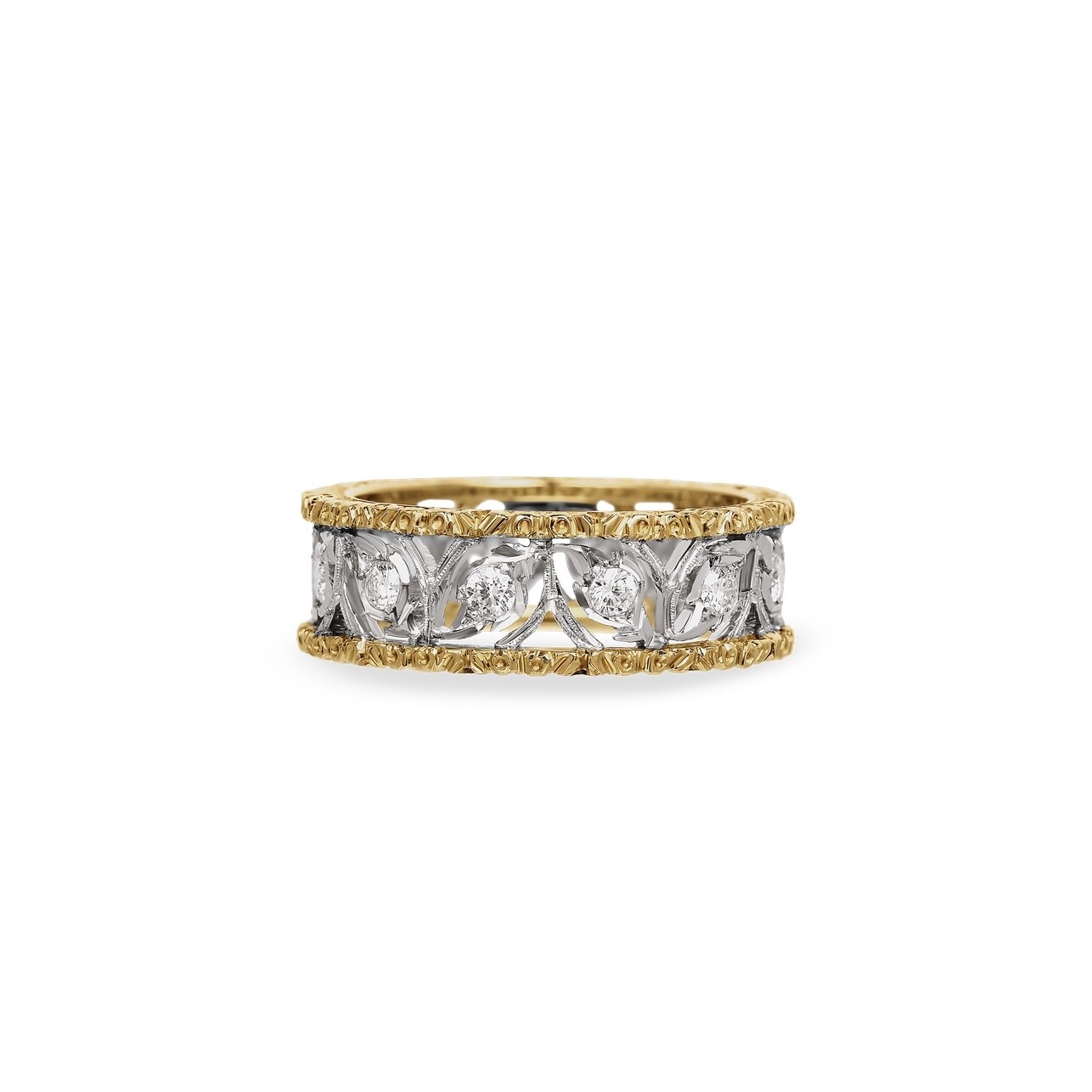 Die Buccellati Eternelle Ramage Ohrringe zeigen ein Design inspiriert von floralen Arabesken. Das Ramage-Motiv bildet fließende Linien, die an fein gearbeitete Blätter erinnern.