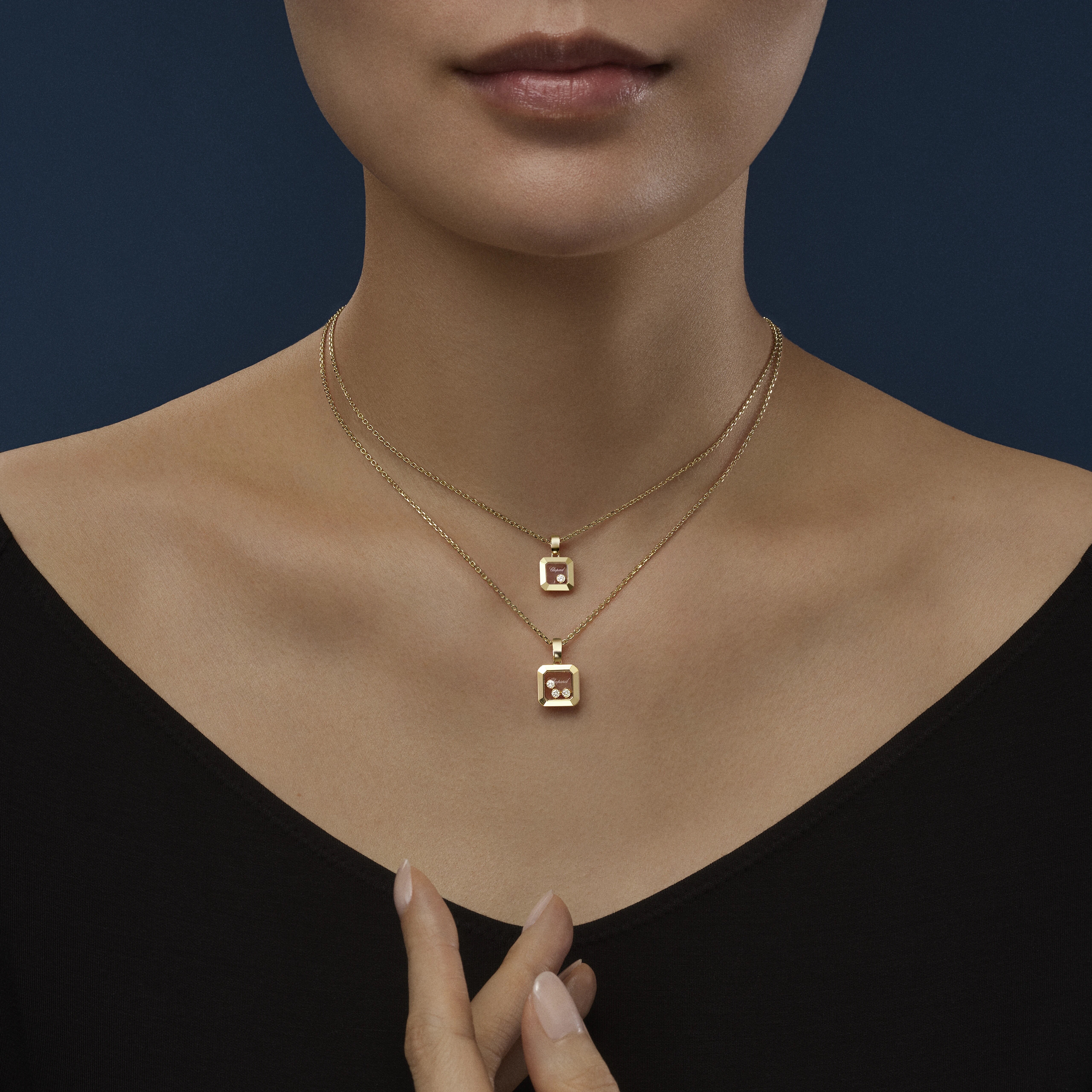 Der Happy Diamonds Icons Anhänger von Chopard verkörpert die verspielte und ikonische Identität der Maison. Die charakteristischen beweglichen Diamanten drehen sich frei zwischen zwei Saphirgläsern und lassen ihr Funkeln bei jeder Bewegung erstrahlen.