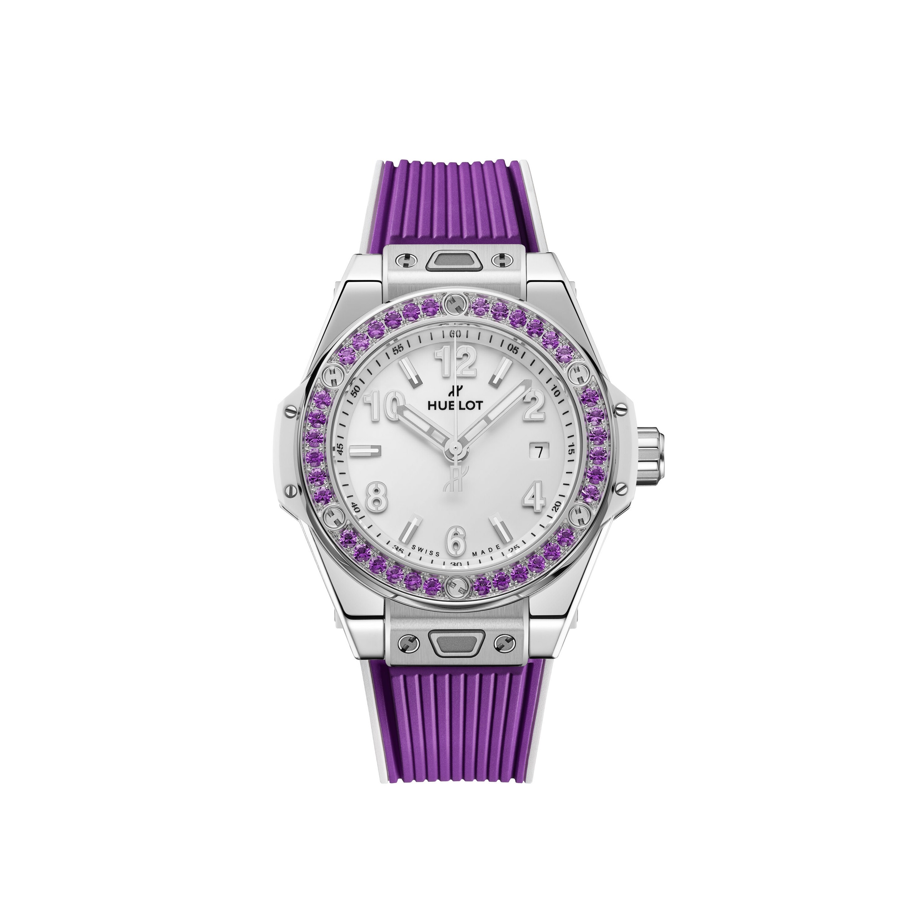 Die Hublot Big Bang Joyful Steel Purple bringt Farbe und Edelsteine in die Kollektion.