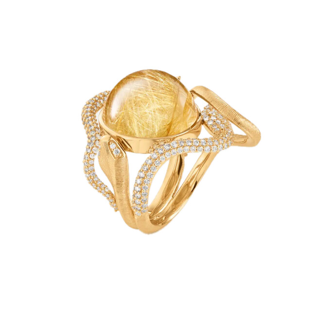 Snakes Ole Lynggaard Copenhagen – Snakes Pavé Ring in 18k Yellow Gold with Rutile Quartz and Diamonds