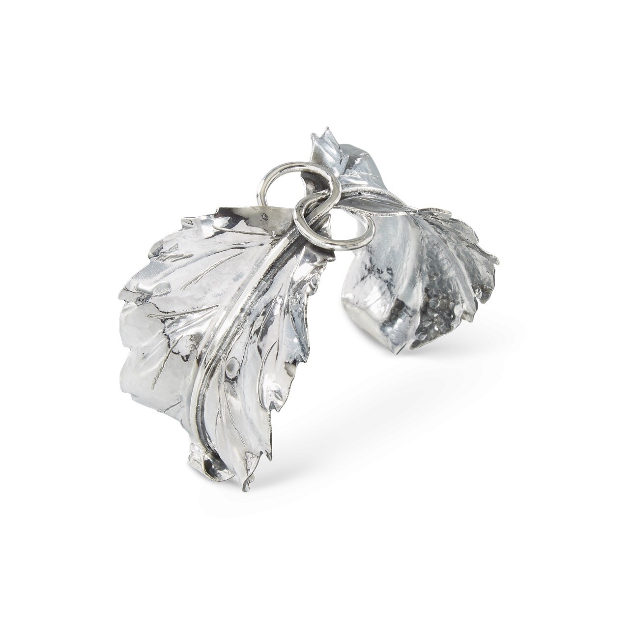 Made from sterling silver 925/1000, the bracelet showcases the Leaf motif with a textured finish. Without gemstones, the design highlights the metalwork and artisanal execution.