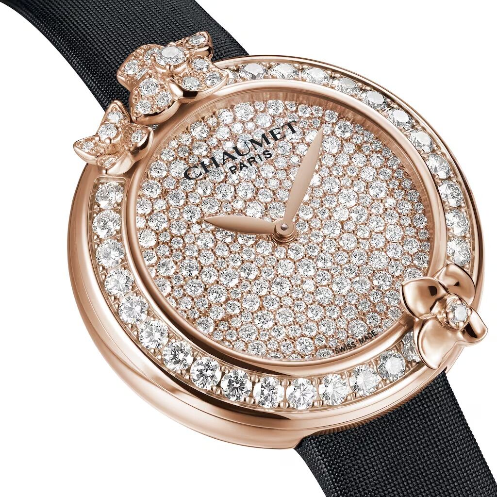 The Chaumet Hortensia Rose Gold Diamond Watch is an exceptional jewellery timepiece inspired by the hydrangea flower, a cherished symbol of Empress Joséphine. This creation perfectly reflects Chaumet’s poetic vision and fine jewellery expertise.