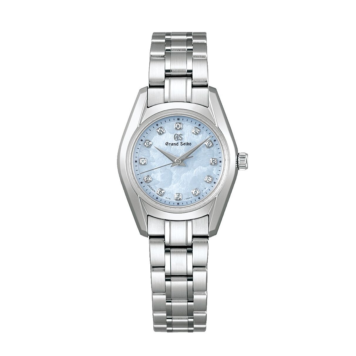 The light blue textured dial, evoking a soft breeze that makes cherry blossoms shimmer, is enhanced by beautifully set diamonds that provide both elegance and excellent legibility. The bezel-free construction and Zaratsu-polished stainless steel case create an expansive dial appearance and refined aesthetic.