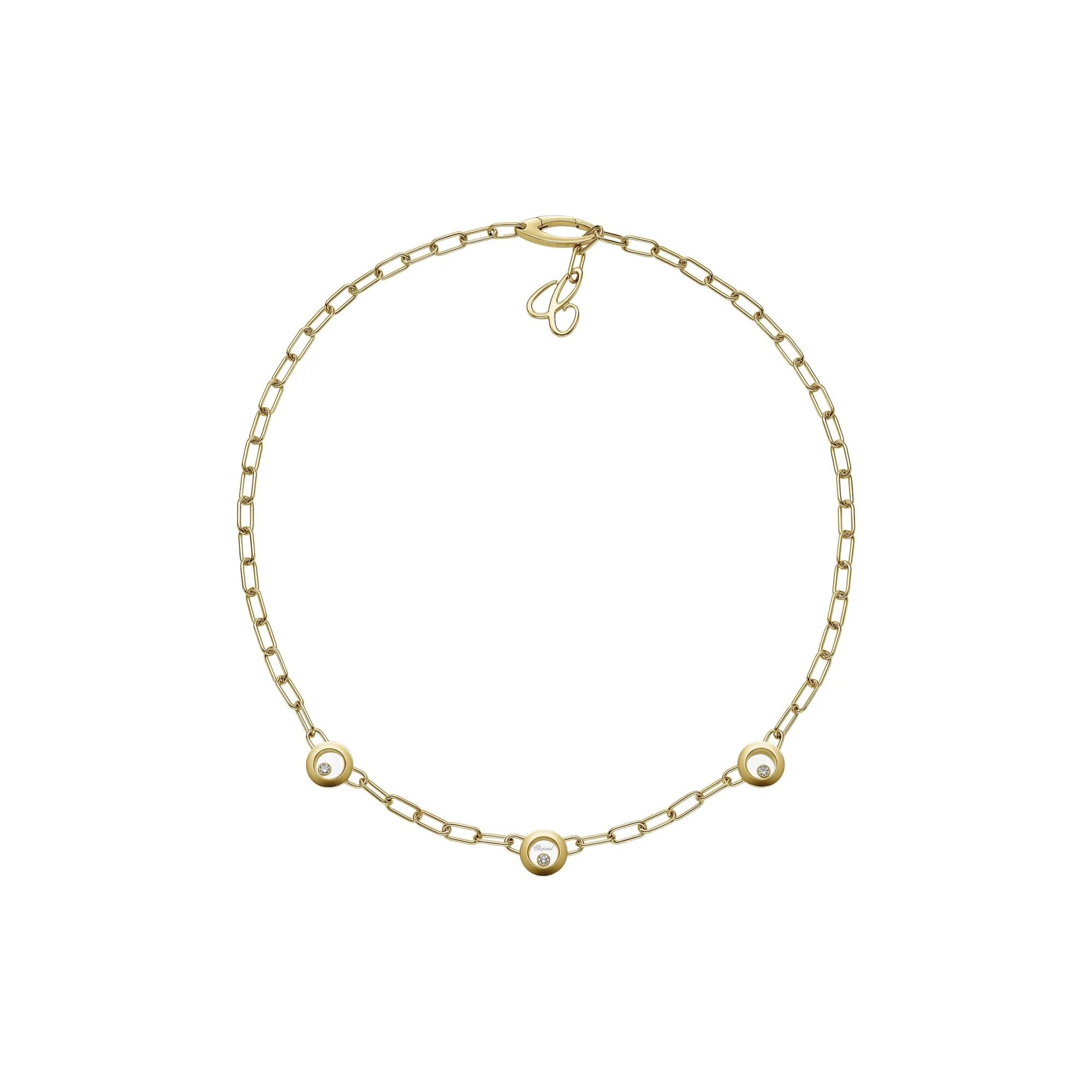 Crafted in ethical 18K yellow gold, the necklace is enhanced by brilliant-cut diamonds, whose radiant sparkle contrasts beautifully with the warmth of the precious metal. A true jewellery signature, Happy Diamonds Icons is designed to be worn effortlessly every day or on special occasions. Carat weight, number of stones and dimensions may vary depending on the creation.