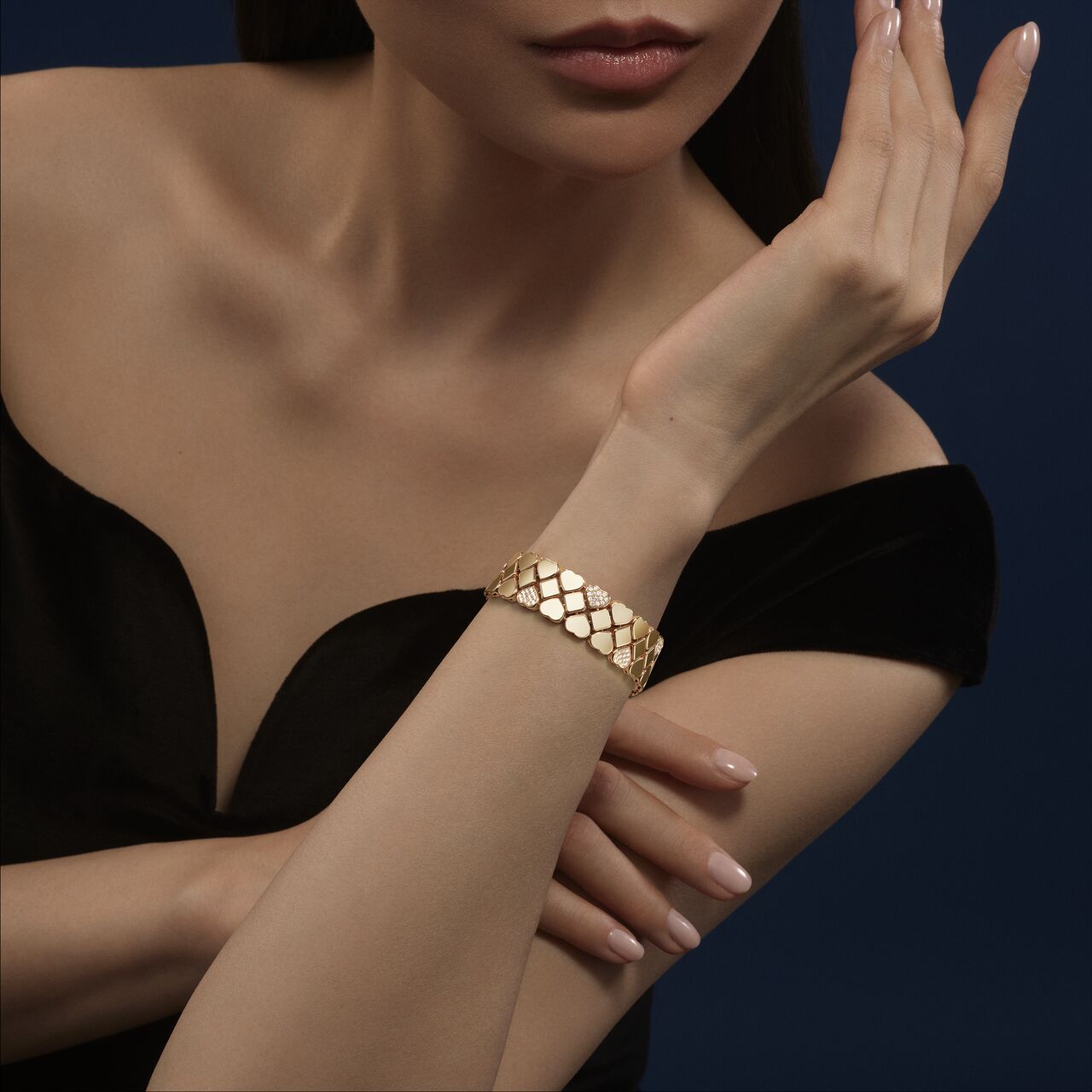 Crafted in 18K rose gold, the bracelet is enhanced by brilliant-cut diamonds, adding luminous sparkle to this timeless creation. Designed to be worn effortlessly every day or for special occasions, the Happy Hearts bracelet embodies modern elegance and enduring style. Carat weight, number of stones and dimensions may vary depending on the creation.