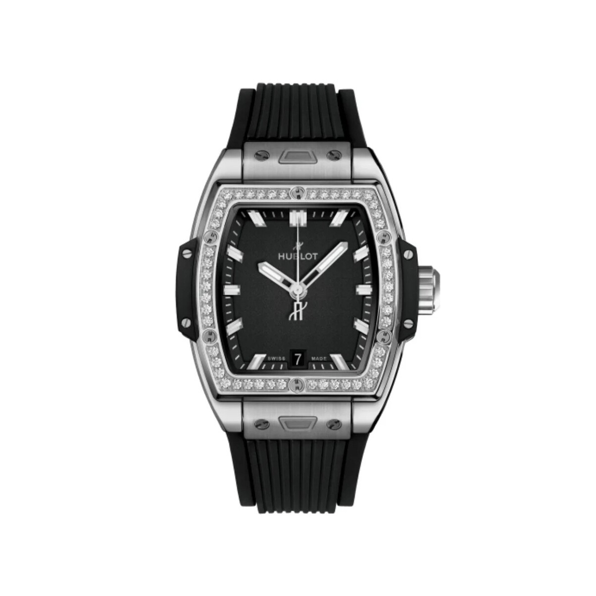 The Hublot Spirit of Big Bang Titanium Diamonds 39 mm reinterprets the iconic Big Bang design in a bold tonneau-shaped case, blending sporty performance with refined jewellery craftsmanship. This timepiece is a true expression of Hublot’s Art of Fusion philosophy.