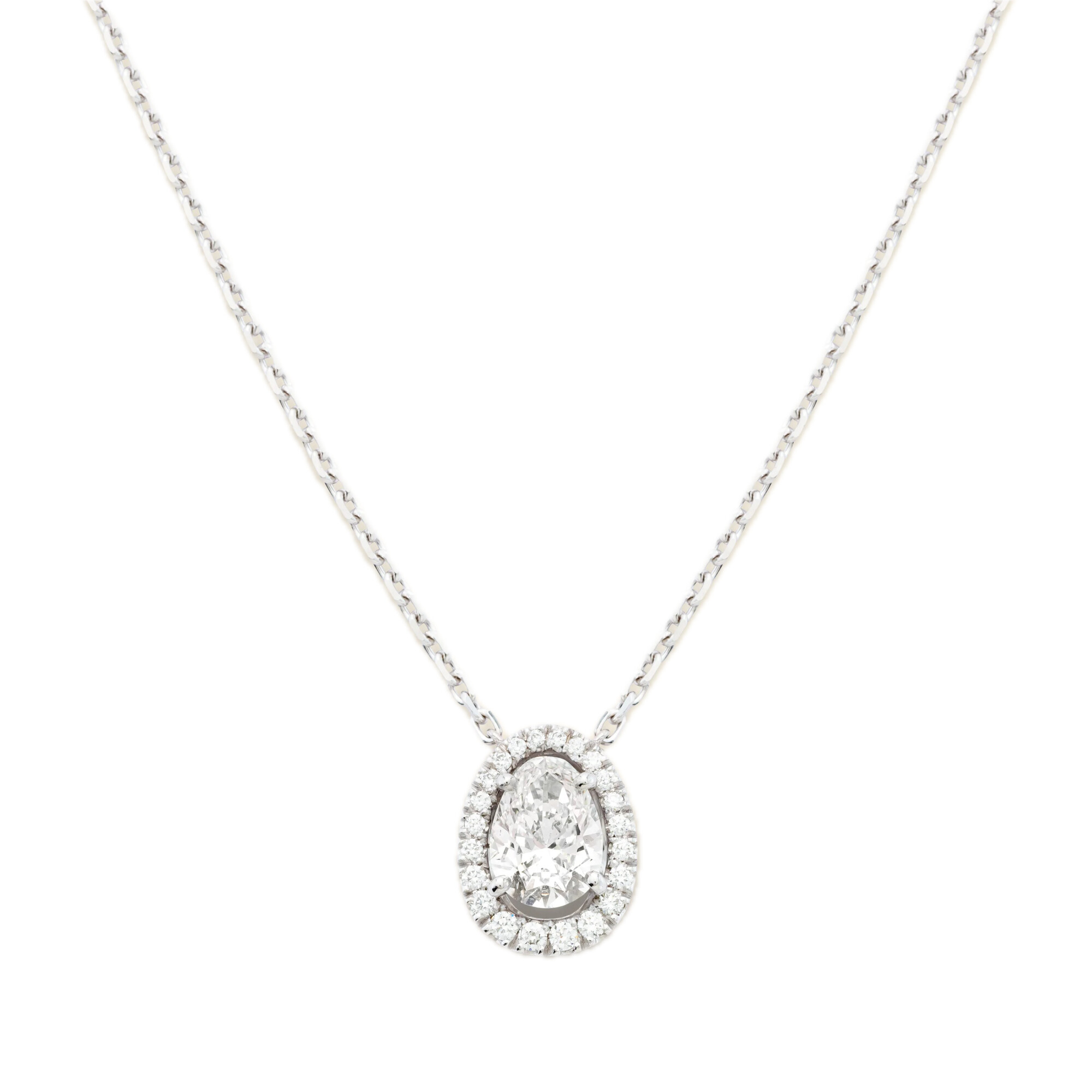 With 57 facets (24 on the crown and 33 on the pavilion), this distinctive cut maximises brilliance and light performance. Its elegant oval silhouette gives the pendant a refined yet contemporary presence.