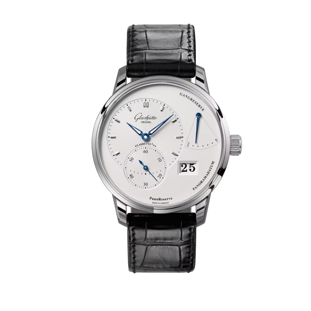 Housed in a 42 mm stainless steel case, the watch is powered by the in-house automatic calibre 65-01, offering approximately 42 hours of power reserve and dependable precision. The distinctive off-centre arrangement — including a small seconds display, power reserve indicator, and the signature Panorama Date — underscores the brand’s technical mastery.