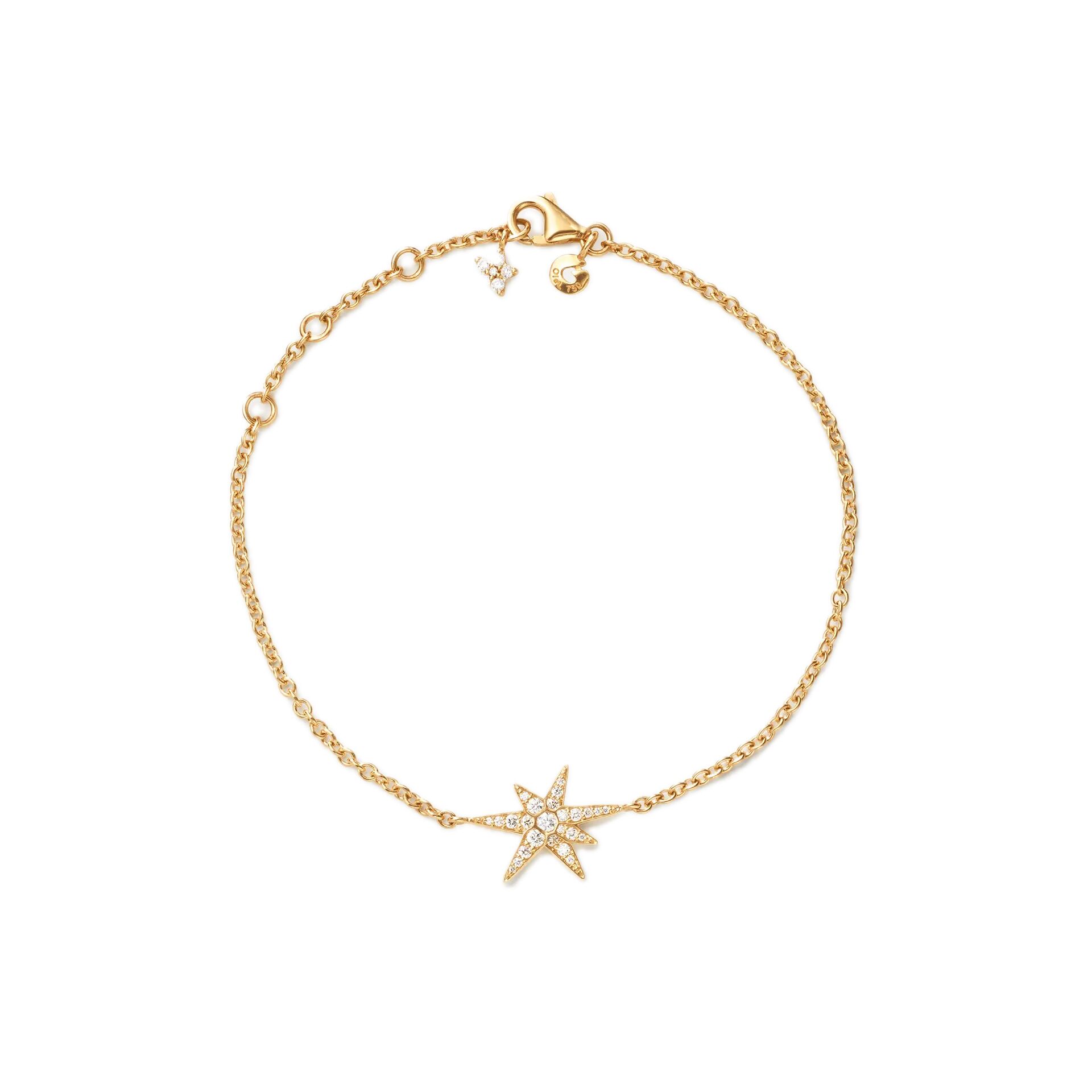 The bracelet can be worn at 15, 16 or 17 cm, thanks to additional chain links for adjustable fit. The adjustable chain end is adorned with a small diamond-set Shooting Star, adding an extra refined sparkle.