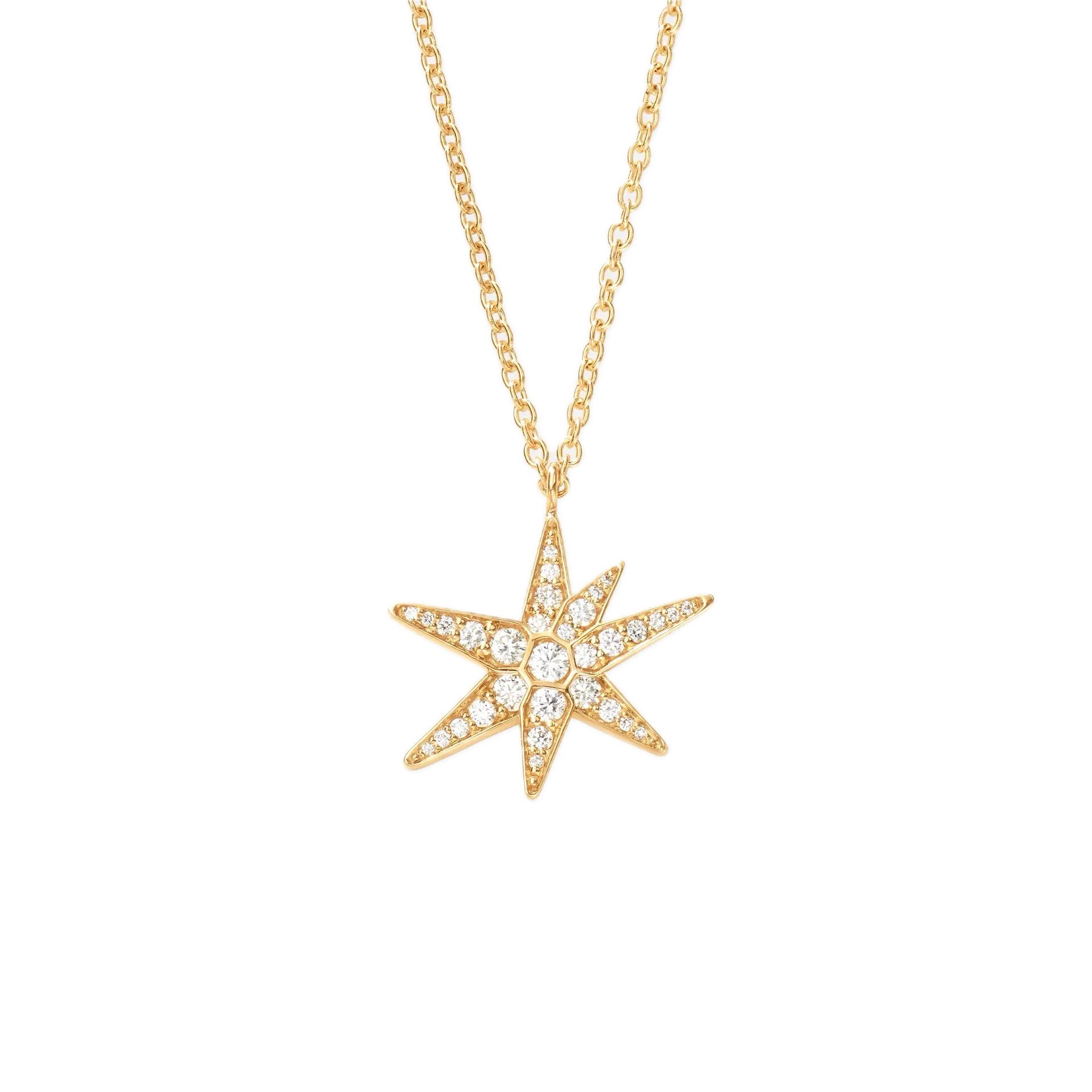 The necklace is mounted on a 30 anchor chain and can be worn at 40, 42 or 45 cm, thanks to additional chain links for adjustable fit. The adjustable chain end is adorned with a small Shooting Star, adding an extra refined sparkle.