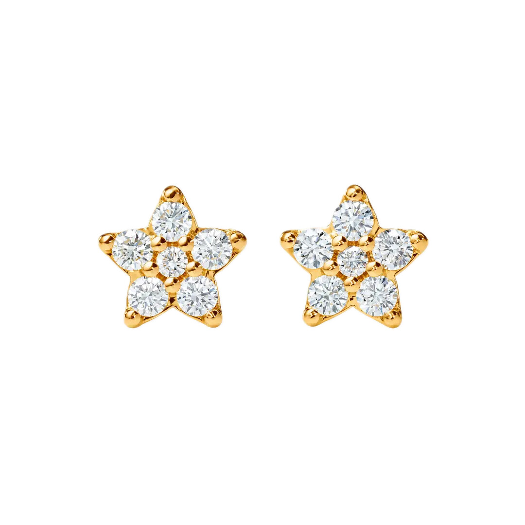 Crafted in 18k yellow gold, the earrings are set with 12 diamonds totalling 0.98 carat (TW VS). Each star features a slightly convex shape and is composed of 6 round brilliant-cut diamonds, raised above the surface to allow light to pass through the facets and enhance brilliance.