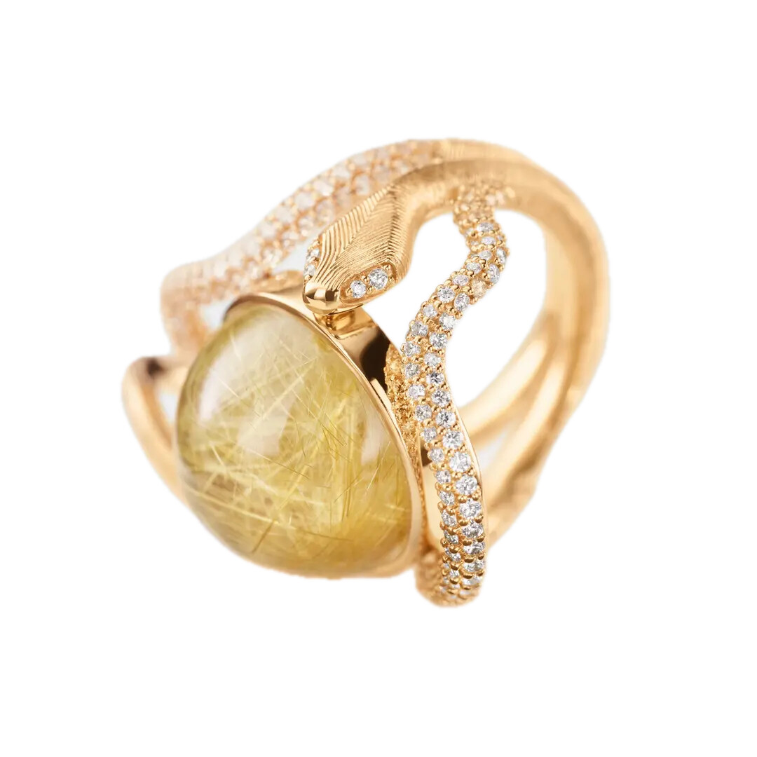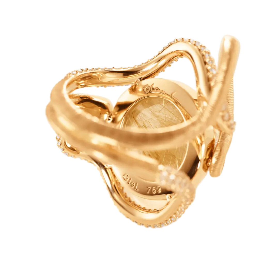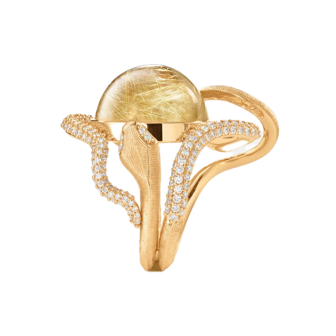 Ole Lynggaard Copenhagen – Snakes Pavé Ring in 18k Yellow Gold with Rutile Quartz and Diamonds Detailed description