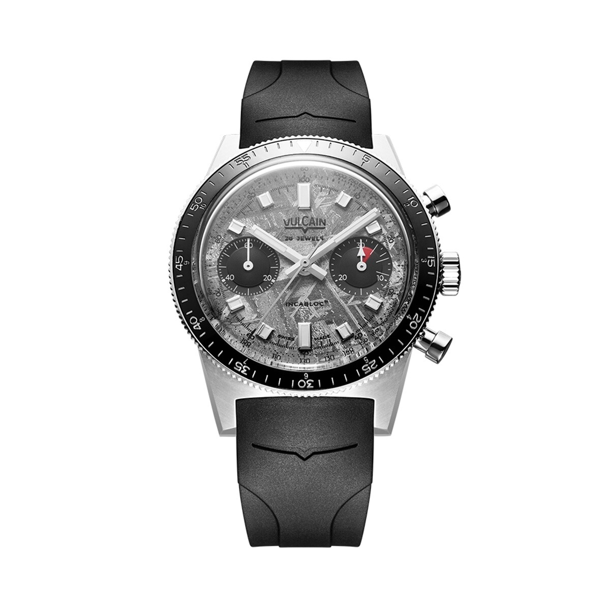 The Vulcain Skindiver Chronograph Meteorite Dial combines the functional heritage of the Skindiver collection with an exceptional material sourced from outer space. This neo-vintage chronograph delivers technical performance, Swiss craftsmanship and a truly distinctive visual identity.
