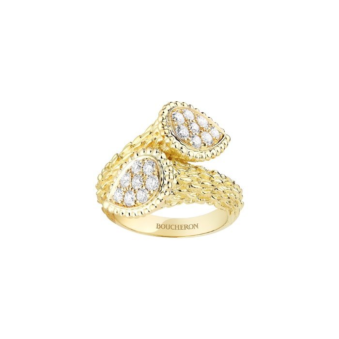 Bague Boucheron Serpent Bohème pavée de diamants sur or jaune.