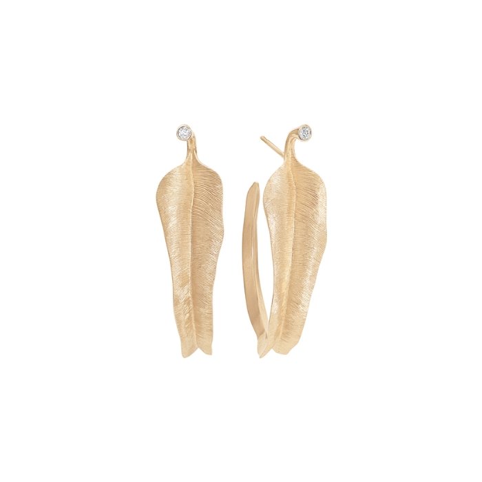 Boucles d'oreilles créoles Ole Lynggaard Leaves en or jaune et diamants