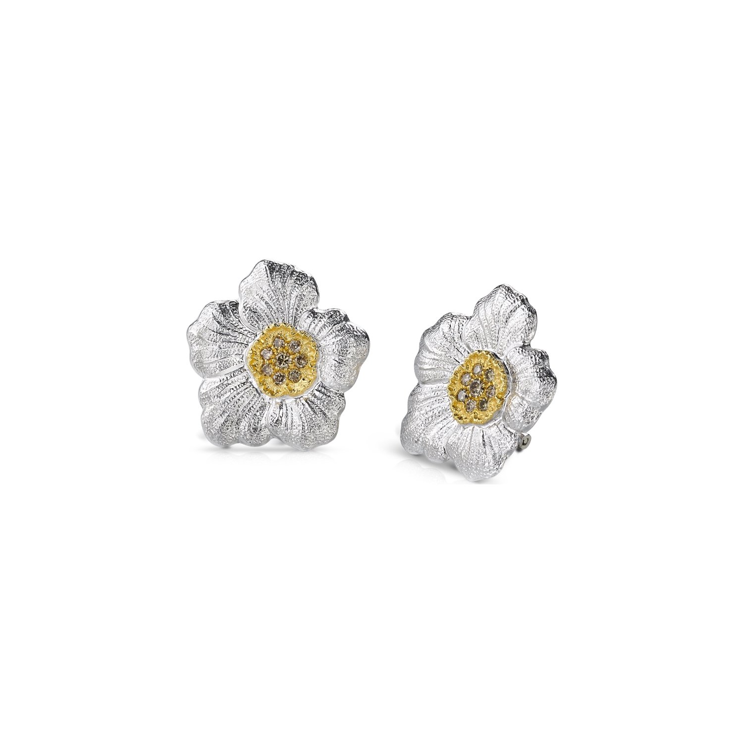 Grands boutons d'oreilles Buccellati Blossoms en argent et diamants bruns