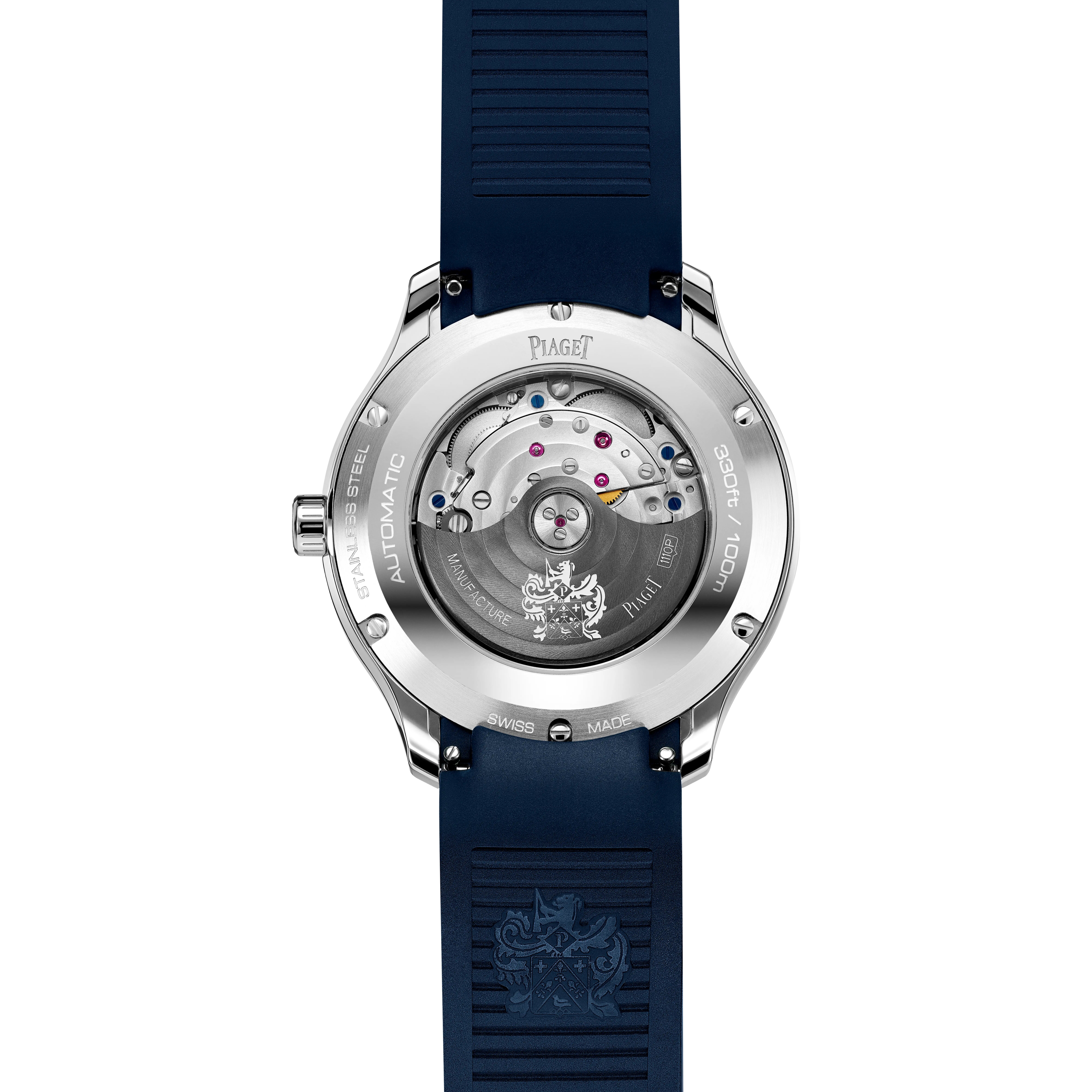 Le boîtier de 42 mm en acier inoxydable offre une présence équilibrée au poignet. Le mouvement automatique Piaget assure précision et fiabilité au quotidien.