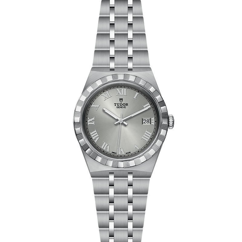 Montre Tudor Royal boîtier en acier 38 mm, cadran argenté, bracelet en acier