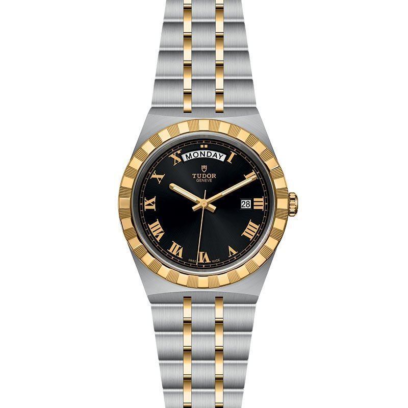 Montre Tudor Royal boîtier en acier 41 mm, lunette en or jaune, bracelet en acier et or