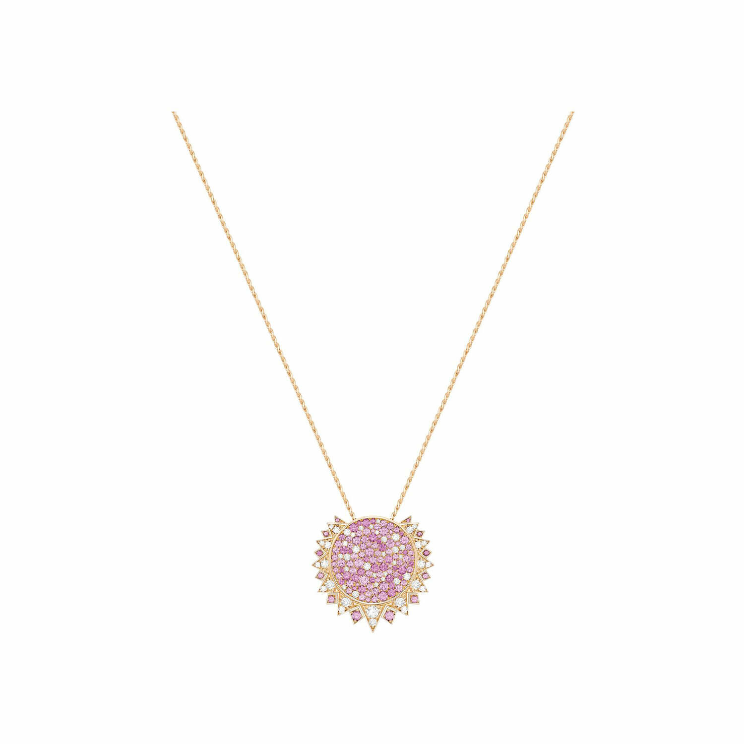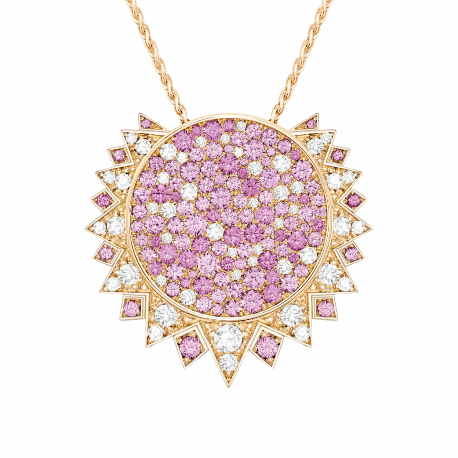 Pendentif Piaget Sunlight en or rose, saphirs roses et diamants Description détaillée